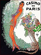 Baker performed the “Danse Sauvage” wearing a costume consisting of a skirt made of a string of artificial bananas. Her success coincided (1925) with the Exposition des Arts Décoratifs, which gave birth to the term “Art Deco“, and also with a renewal of interest in non-Western forms of art, including African. Baker represented one aspect of this fashion. In later shows in Paris, she was often accompanied on stage by her pet cheetah “Chiquita,” who was adorned with a diamond collar. The cheetah frequently escaped into the orchestra pit, where it terrorized the musicians, adding another element of excitement to the show.