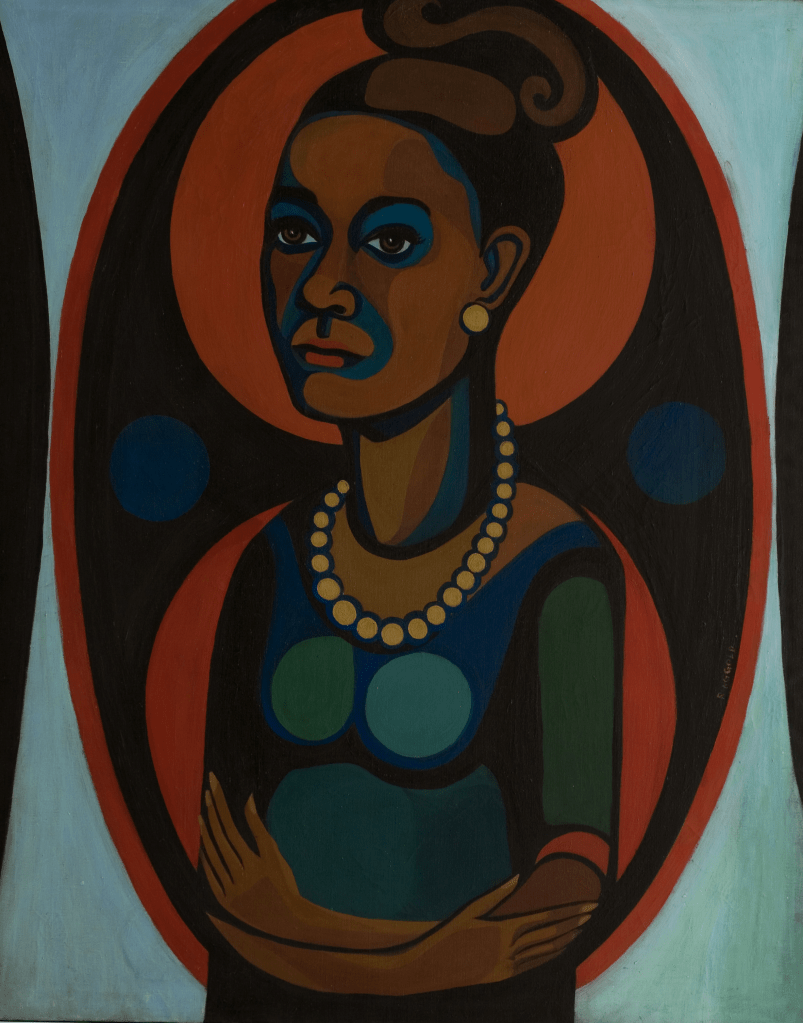 During the early 1960’s Ringgold traveled in Europe. She created her first political paintings, The American People Series from 1963 to 1967 and had her first and second one-person exhibitions at the Spectrum Gallery in New York. In the early 1970’s Ringgold began making tankas (inspired by a Tibetan art form of paintings framed in richly brocaded fabrics), soft sculptures and masks. She later utilized this medium in her masked performances of the 1970’s and 80’s. Although Faith Ringgold’s art was initially inspired by African art in the 1960’s, it was not until the late 1970’s that she traveled to Nigeria and Ghana to see the rich tradition of masks that have continued to be her greatest influence.