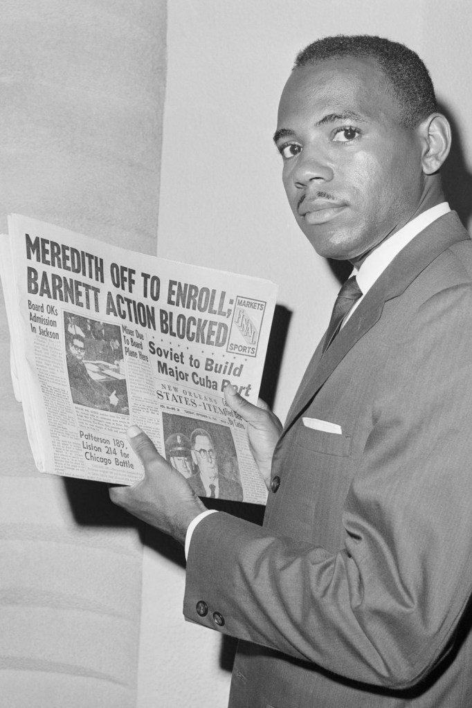 U.S. Air Force veteran James Meredith became the first Black student to integrate the University of Mississippi (a.k.a. Ole Miss) in 1962. But this achievement followed a string of tumultuous events, including: multiple registration attempts, opposition that led Meredith to take legal action, the involvement of the Supreme Court, and violent rioting on campus among hundreds of marshals, soldiers, and others (two “bystanders” died).BETTMANN/GETTY IMAGES
