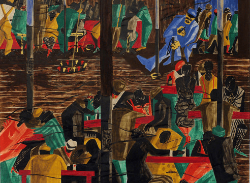 Born in Bridgetown, Barbados, Knight was seven years old when she moved with family friends to St. Louis, Missouri, following the unexpected death of her father. She spent the majority of her youth, however, in Harlem. An avid reader and dance, theatre, and opera enthusiast, Knight immersed herself in the Harlem Renaissance during her teen years. She briefly attended Howard University in Washington, DC, where she studied with Loïs Mailou Jones and James Lesesne Wells. Financial hardship brought on by the Great Depression compelled Knight to leave college after her second year and return to Harlem. There, she studied painting and sculpture with Augusta Savage and—thanks to Savage’s recommendation—joined the Works Progress Administration’s mural project. Savage also introduced the young artist to writers and activists of the Harlem Renaissance, including Romare Bearden, Aaron Douglas, Charles Alston, and Alain Locke. As part of her WPA duties, Knight assisted Alston with a mural for the children’s ward at Harlem Hospital. It was in Alston’s studio that Knight met fellow artist Jacob Lawrence, whom she married in 1941.