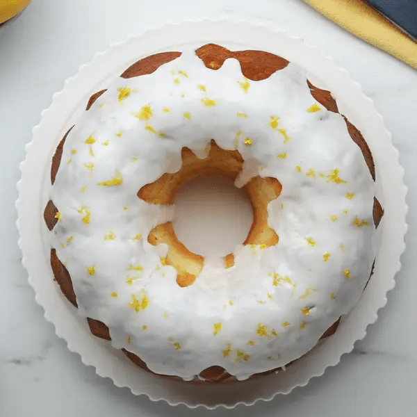 - Pour the icing over the top of the cake, letting it drip down the sides. Grate lemon zest over the icing. Let the glaze dry completely, about 30 minutes.