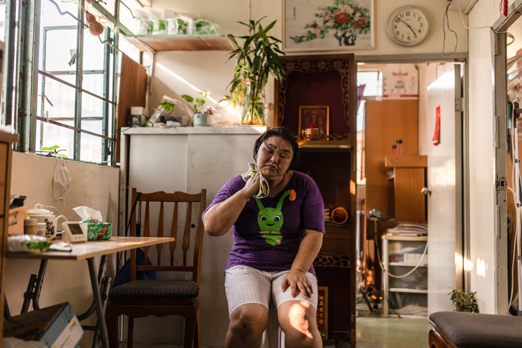 A woman wipes sweat from her face at her house Hong Kong during a recording breaking heatwave. Heat is a dangerous form of extreme weather, but there are ways to keep your home and body cool.PHOTOGRAPH BY LOUISE DELMOTTE, FOR THE WASHINGTON POST/GETTY IMAGES