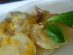- Place sliced potatoes into the slow cooker. Mix together shredded cheese, ham, and onion in a bowl. Add to potatoes in the slow cooker; mix well.