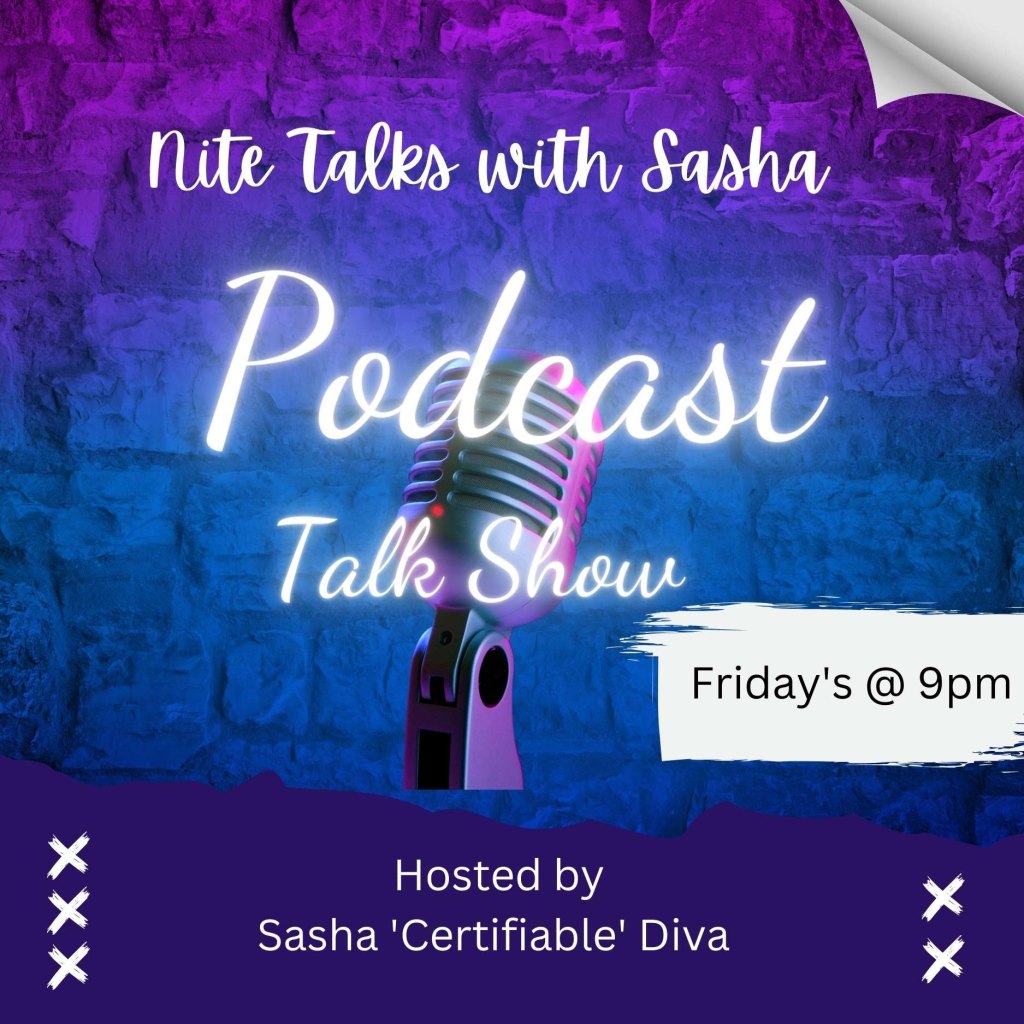 Nite Talks with Sasha is a Podcast Talkshow from a plus sized woman ‘s point of view. My show is inspiring,informative, entertaining and sexy, crazy, cool just like me, Ya girl….ya Diva Sasha. Join me every Friday nite at 9pm at https://www.blogtalkradio.com/mrsmorgan7742 or you can also listen to my podcast Talkshow on Apple Podcast at https://podcasts.apple.com/us/podcast/mrsmorgan7742/id1705072751?uo=4