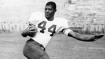He was selected as Elmira Player of the Year and high school All-American in his junior and senior years. Davis also excelled in the classroom. Colleges coast to coast closely watched Ernie’s athletic ability. Scholarship offers came from over 50 schools, including Notre Dame, Air Force, and UCLA. Recruiting in 1958 was not as sophisticated as it is today, plus many colleges, particularly those in the South, did not offer scholarships to Black players. Davis chose Syracuse University. The school enjoyed its greatest football success while Davis played for them. The team’s record was 24-5 plus two bowl victories.