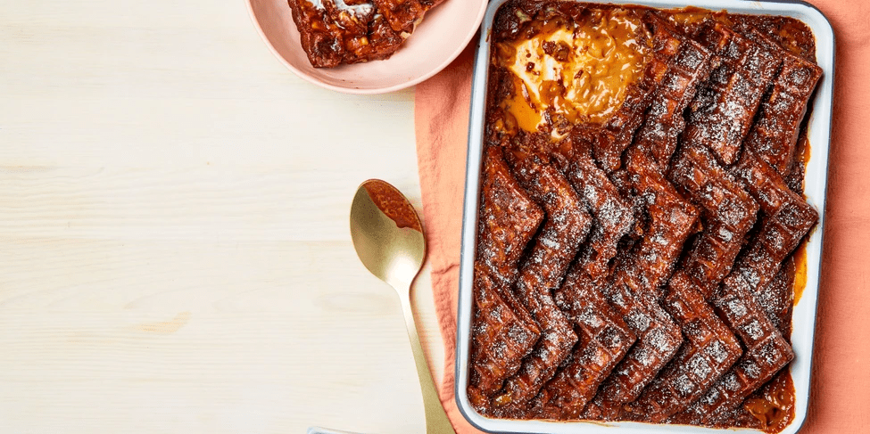 Nothing says indulgence quite like this decadent chocolate & salted caramel waffle bread & butter pudding. It’s filled with layers of salted caramel sauce and a rich chocolate custard. Use ready-made waffles for an easy shortcut.