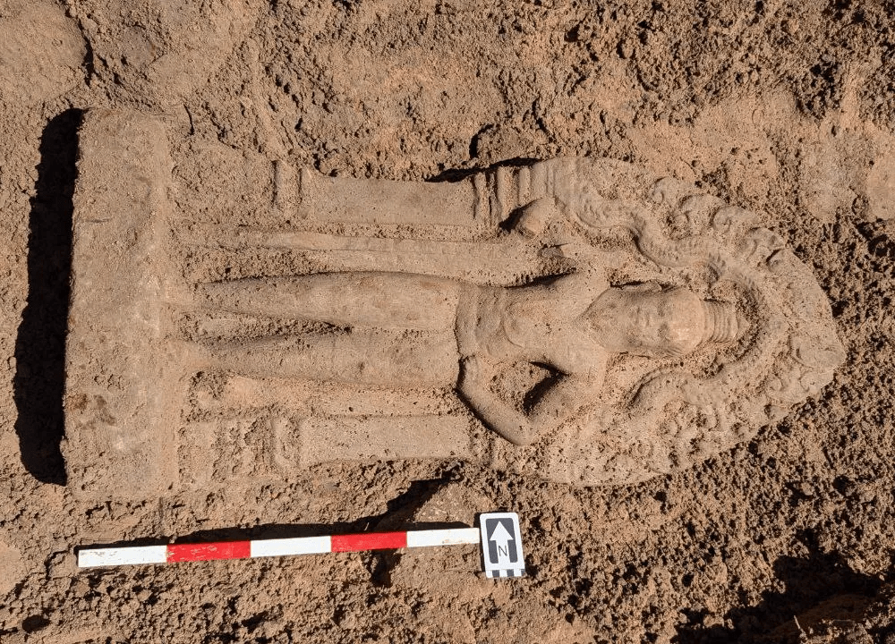 The team was analyzing the structure of a royal palace’s gate when they discovered 12 statues made out of sandstone