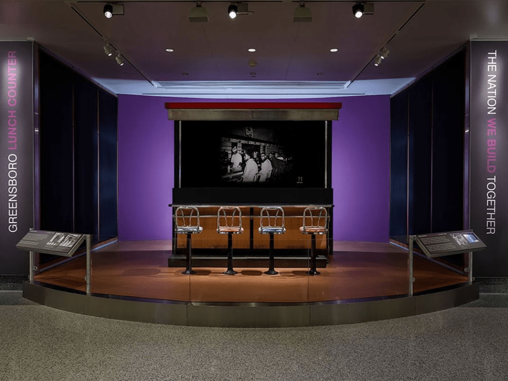 Four stools and a section of the lunch counter from the Greensboro, North Carolina, Woolworth’s, where silent protests against discrimination were held, are on display at the Smithsonian’s National Museum of American History. “These objects have been on view for more than 30 years, and their display is central to our mission to explore, preserve and share the complexity of our past,” said Anthea M. Hartig, the museum’s director. NMAH