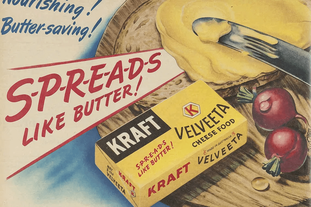 In the 1930s and ’40s, Kraft began marketing Velveeta successfully, if rather dubiously, as a health food and diet aid, and its low price and convenience—beloved by kids, shelf-stable, melts like a dream—charmed America’s homemakers throughout the suburban ’60s and beyond. The New York Times in 1976 declared Velveeta a “worldwide favorite,” although no country could vie with the U.S. for sheer consumption: In 1996, domestic sales hit an astonishing peak of 8.75 pounds for every American.